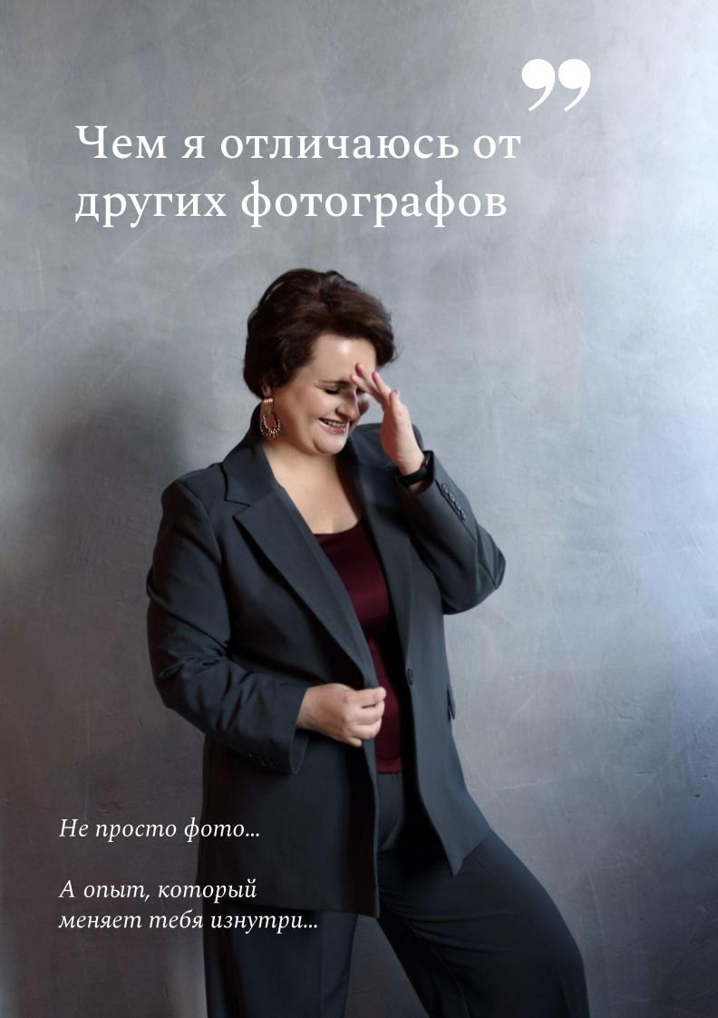 Я создаю авторские фотосессии для женщин — преимущественно от 35 лет и старше.